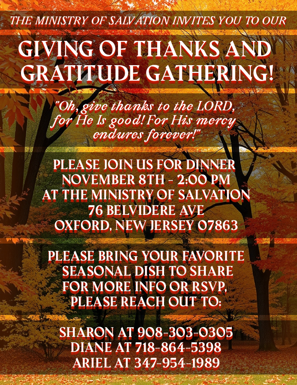 The Ministry of Salvation Fellowship. 76 Belvidere Avenue Oxford, NJ 07863 …